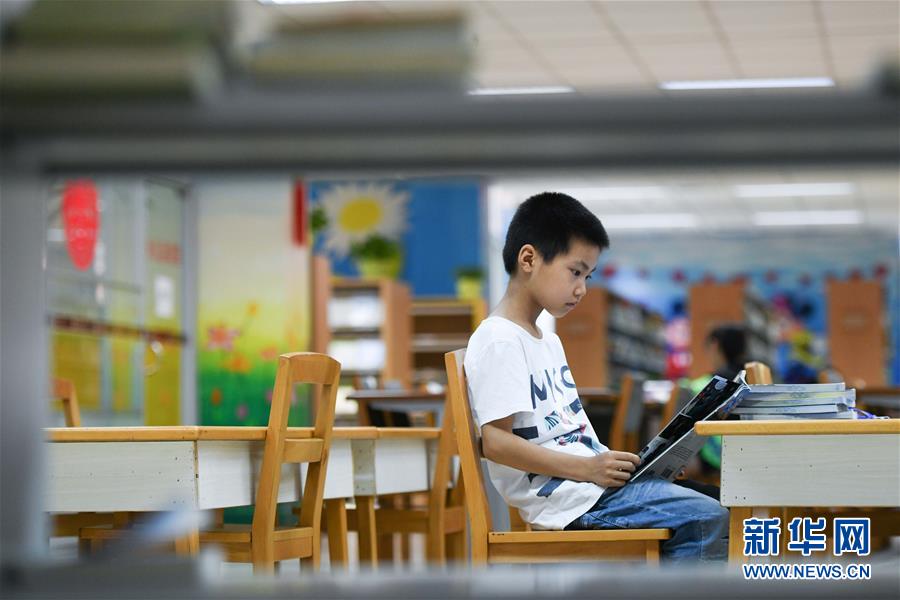7月20日,一名小朋友在安徽省图书馆看书。 暑假期间,位于安徽省合肥市的安徽省图书馆人流较平时大幅增加,不少小朋友来到图书馆内阅读。 新华社记者 张端 摄