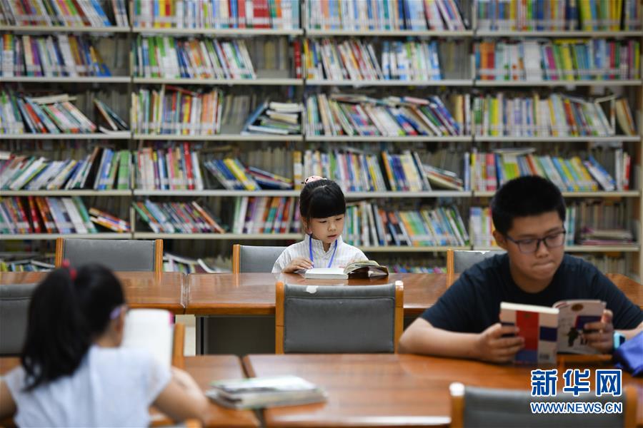 7月20日,孩子们在安徽省图书馆看书。 暑假期间,位于安徽省合肥市的安徽省图书馆人流较平时大幅增加,不少小朋友来到图书馆内阅读。 新华社记者 张端 摄