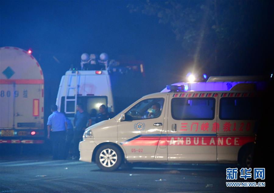 7月20日凌晨,救援人员在爆炸现场守候。 新华社记者 冯大鹏 摄