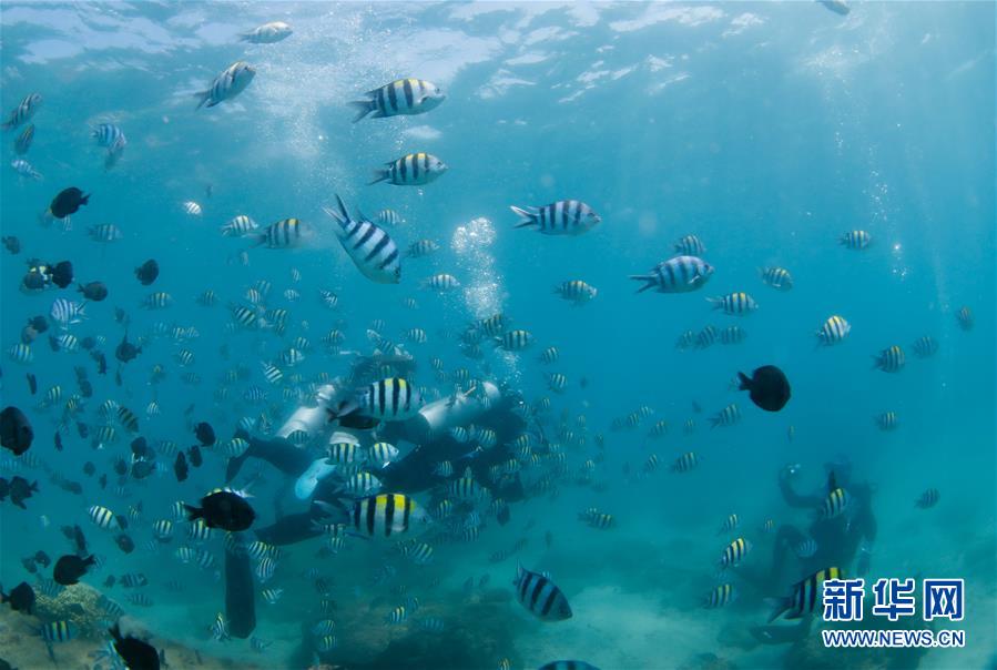 7月20日,游客在分界洲岛海域体验潜水。 近日,为期三天的海南分界洲岛“嘿,潜水吧!”首届潜水主题系列活动暨PADI全球女士潜水日活动开幕,来自国内外众多潜水爱好者、游客、海洋生态工作人员、潜水装具商等参加活动。 新华社记者 杨冠宇 摄