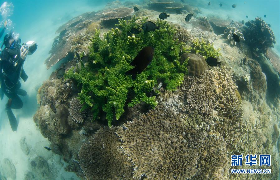 7月20日,游客在分界洲岛海域拍摄珊瑚礁。 近日,为期三天的海南分界洲岛“嘿,潜水吧!”首届潜水主题系列活动暨PADI全球女士潜水日活动开幕,来自国内外众多潜水爱好者、游客、海洋生态工作人员、潜水装具商等参加活动。 新华社记者 杨冠宇 摄
