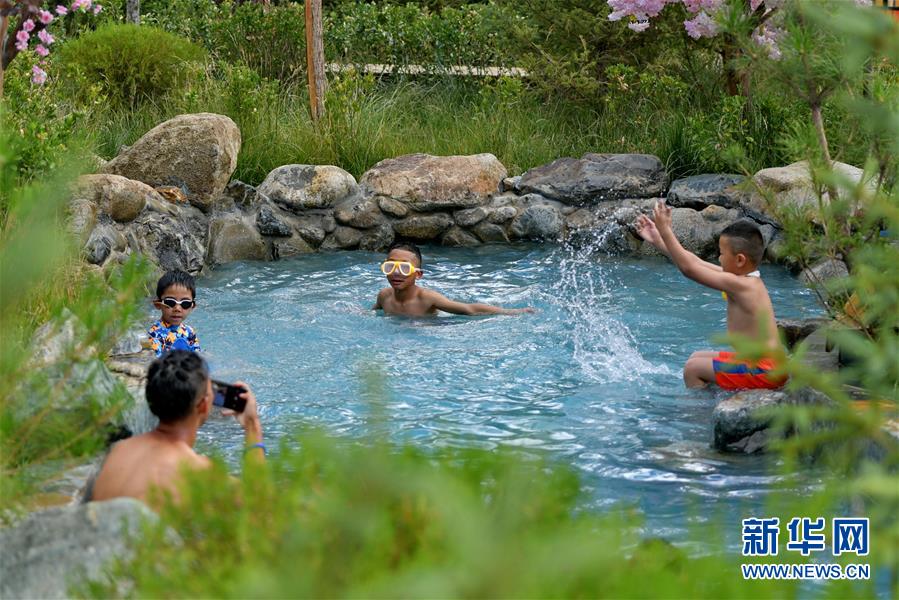 孩子们在达东村景区温泉里嬉戏(7月20日摄)。 西藏拉萨市柳梧乡达东村是一个千年古村,也曾是一个贫困村。近年来,依托秀美的自然风光、深厚的历史文化和淳朴的风土人情,当地政府实施文化旅游产业精准扶贫,使达东村蜕变成为乡村旅游胜地。 新华社记者 张汝锋 摄