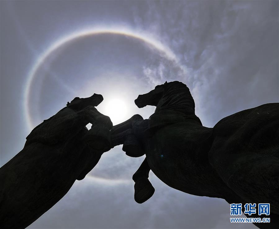 这是7月21日在鄂尔多斯市拍摄的日晕景观。新华社记者 贾立君 摄