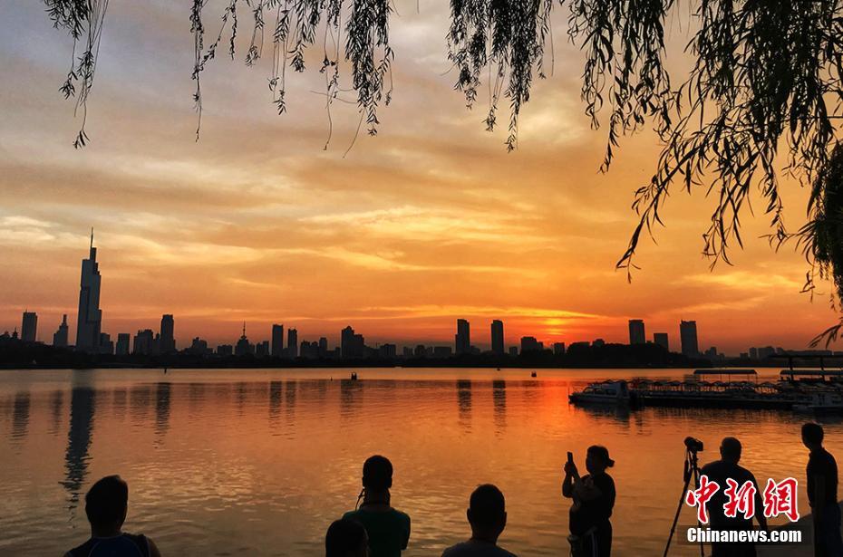 7月20日傍晚,南京上空迎来绚丽晚霞,放眼望去,城市“颜值爆表”。 图为绚丽的晚霞吸引了民众的目光。 泱波 摄