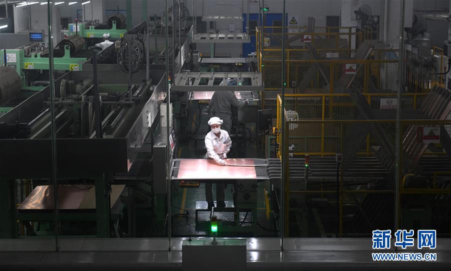 在广东东莞松山湖的生益科技股份有限公司,工人在生产线上工作。据介绍,生益科技的产品覆铜板年产量居全球第二,其中99%以上的产品为自主研发(2019年7月11日摄)。 新华社记者卢汉欣摄