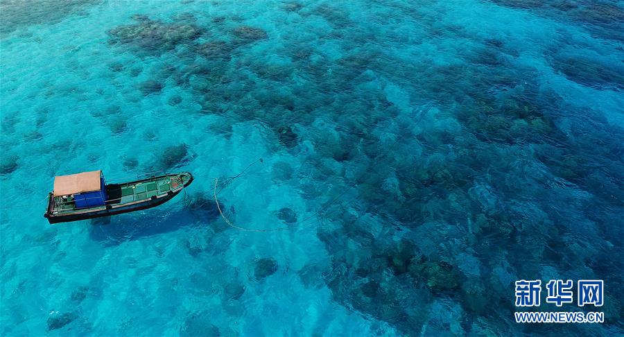 这是西沙永乐群岛的甘泉岛附近的海面(2017年4月23日无人机拍摄)。新华社记者 郭程 摄