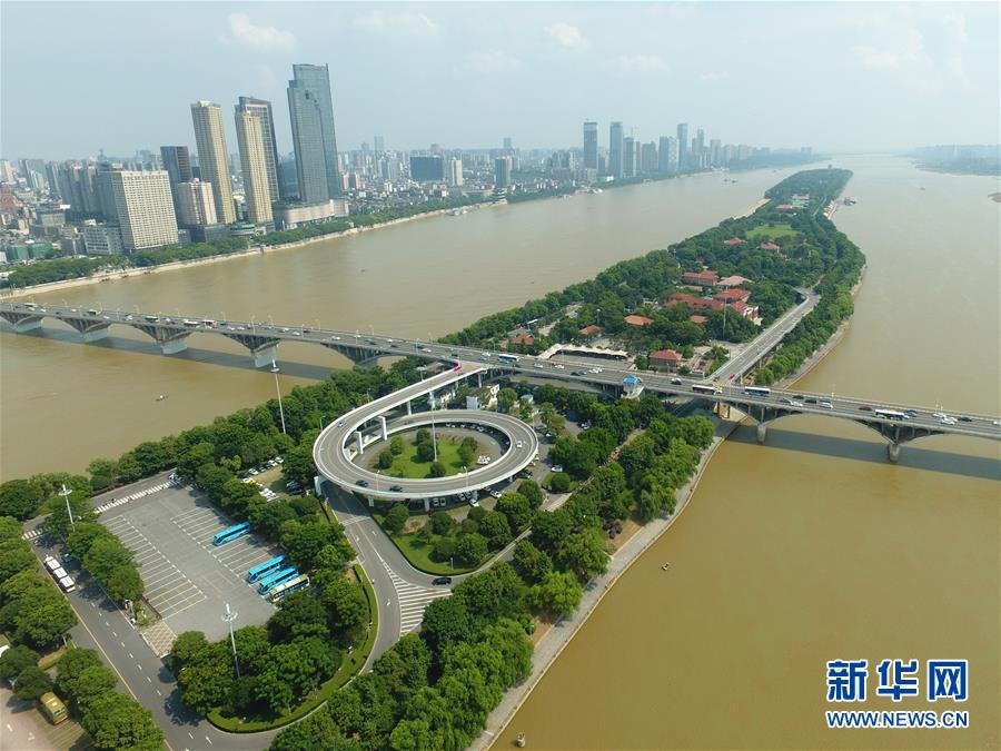 这是7月22日拍摄的位于湘江江心的长沙橘子洲(无人机拍摄)。 当日,湖南长沙橘子洲景区在湘江水位下降后,经过清淤,恢复对外开放。此前,由于湘江水位上涨,橘子洲景区曾于7月9日紧急闭园。 新华社记者 薛宇舸 摄
