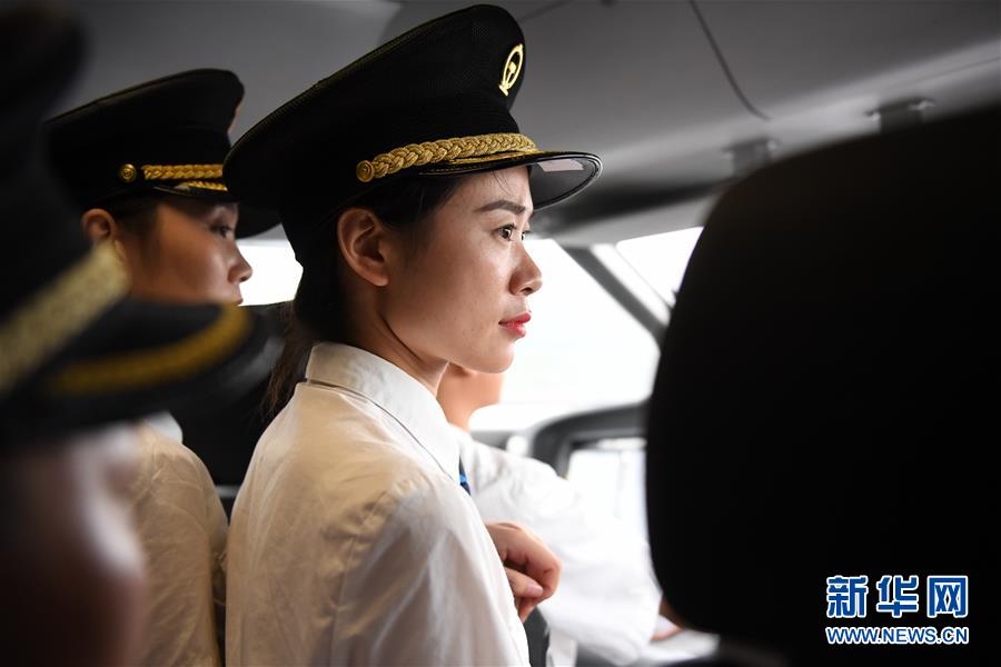 7月22日,女动车组司机学员高杨在D6809次动车组列车驾驶室内观摩学习。 今年5月,中国铁路西安局集团有限公司启动了女动车组司机学员的选拔工作,29名女动车组司机学员于近日迎来登车观摩培训等课程。这些后备司机将接受高速铁路基本知识、行车规章、动车组司机乘务知识等培训,同时还要在涉及高铁运营的部门进行观摩学习。培训合格者将成为我国首批女动车组司机,驾驶动车组列车为广大旅客服务。 新华社记者 李一博 摄