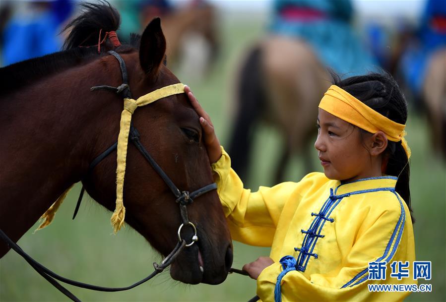 7月19日,赛罕吉雅在“四季乌珠穆沁”马文化主题活动上。 今年10岁上三年级的赛罕吉雅,已经是内蒙古东乌珠穆沁旗满都宝力格镇小有名气的赛马骑手。进入7月暑假,草原上各地的那达慕和赛马活动接二连三,赛罕吉雅也开始了自己马背上“飞驰”的夏天。 赛罕吉雅的父亲阿木尔吉日嘎拉是当地草原上的驯马手,受父亲影响,赛罕吉雅7岁学会骑马,8岁便开始利用寒暑假和节假日参加草原上各类赛马活动。截至目前,赛罕吉雅已经赢得大大小小30多次赛马比赛的冠军。 现在草原上的孩子大多在旗里和镇里上学,会骑马的孩子越来越少。赛罕吉雅身体轻巧,骑术出众,周边亲戚朋友家的马匹参加比赛都找她当骑手。今年初冬季那达慕的一次比赛中,赛罕吉雅骑着爸爸朋友的马参加比赛,由于在比赛中赛马受到惊吓而失控,将她摔下马背几乎昏了过去。父母担心她,让她放弃第二天的比赛,但倔强的赛罕吉雅还是坚持骑着自家的马参加比赛,并获得名次。 7月20日,在“四季乌珠穆沁”马文化主题活动赛马环节上,赛罕吉雅连续骑着自家的马和叔叔家的马参加两场赛马比赛,分别获得第二名和第五名的好成绩。她说:“只要条件允许,在不影响自己学习的同时,我会坚持骑下去。” 新华社记者 任军川 摄