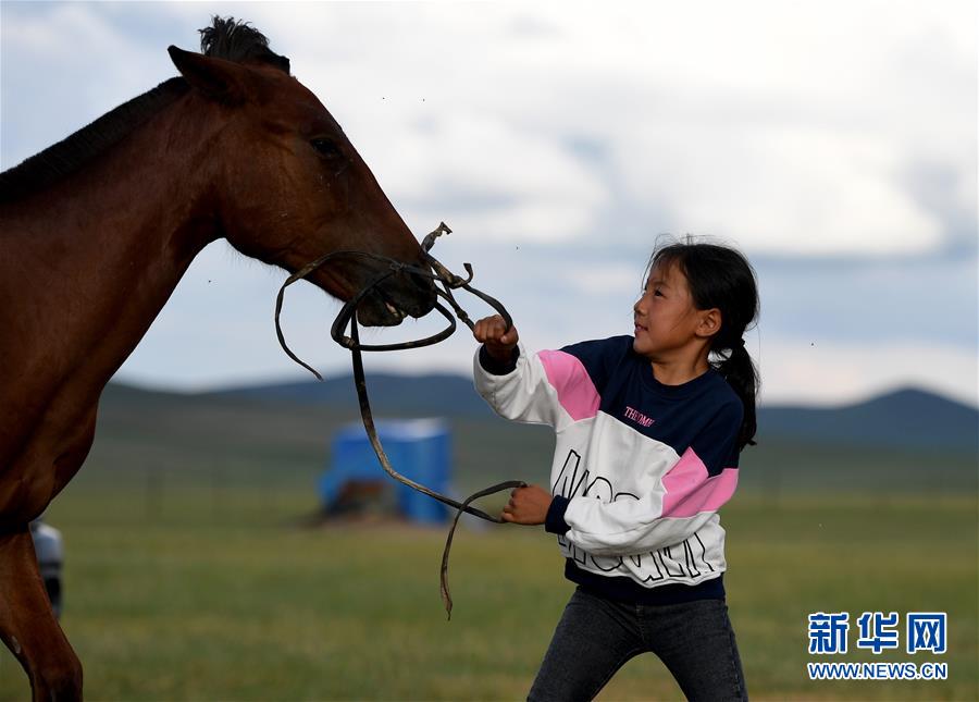 7月20日,赛罕吉雅解下赛马的笼头。 今年10岁上三年级的赛罕吉雅,已经是内蒙古东乌珠穆沁旗满都宝力格镇小有名气的赛马骑手。进入7月暑假,草原上各地的那达慕和赛马活动接二连三,赛罕吉雅也开始了自己马背上“飞驰”的夏天。 赛罕吉雅的父亲阿木尔吉日嘎拉是当地草原上的驯马手,受父亲影响,赛罕吉雅7岁学会骑马,8岁便开始利用寒暑假和节假日参加草原上各类赛马活动。截至目前,赛罕吉雅已经赢得大大小小30多次赛马比赛的冠军。 现在草原上的孩子大多在旗里和镇里上学,会骑马的孩子越来越少。赛罕吉雅身体轻巧,骑术出众,周边亲戚朋友家的马匹参加比赛都找她当骑手。今年初冬季那达慕的一次比赛中,赛罕吉雅骑着爸爸朋友的马参加比赛,由于在比赛中赛马受到惊吓而失控,将她摔下马背几乎昏了过去。父母担心她,让她放弃第二天的比赛,但倔强的赛罕吉雅还是坚持骑着自家的马参加比赛,并获得名次。 7月20日,在“四季乌珠穆沁”马文化主题活动赛马环节上,赛罕吉雅连续骑着自家的马和叔叔家的马参加两场赛马比赛,分别获得第二名和第五名的好成绩。她说:“只要条件允许,在不影响自己学习的同时,我会坚持骑下去。” 新华社记者 任军川 摄