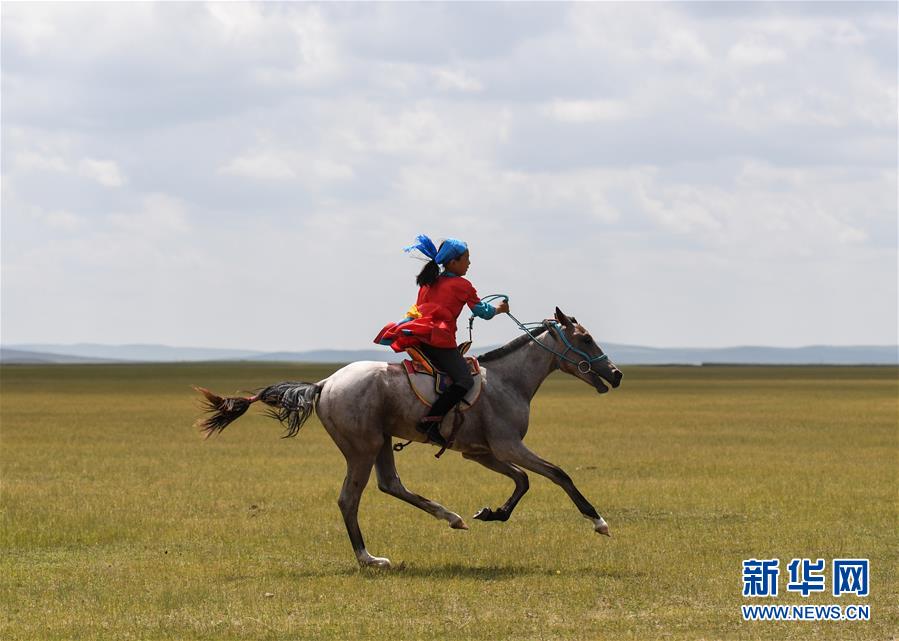 7月20日,赛罕吉雅参加“四季乌珠穆沁”马文化主题活动赛马环节。 今年10岁上三年级的赛罕吉雅,已经是内蒙古东乌珠穆沁旗满都宝力格镇小有名气的赛马骑手。进入7月暑假,草原上各地的那达慕和赛马活动接二连三,赛罕吉雅也开始了自己马背上“飞驰”的夏天。 赛罕吉雅的父亲阿木尔吉日嘎拉是当地草原上的驯马手,受父亲影响,赛罕吉雅7岁学会骑马,8岁便开始利用寒暑假和节假日参加草原上各类赛马活动。截至目前,赛罕吉雅已经赢得大大小小30多次赛马比赛的冠军。 现在草原上的孩子大多在旗里和镇里上学,会骑马的孩子越来越少。赛罕吉雅身体轻巧,骑术出众,周边亲戚朋友家的马匹参加比赛都找她当骑手。今年初冬季那达慕的一次比赛中,赛罕吉雅骑着爸爸朋友的马参加比赛,由于在比赛中赛马受到惊吓而失控,将她摔下马背几乎昏了过去。父母担心她,让她放弃第二天的比赛,但倔强的赛罕吉雅还是坚持骑着自家的马参加比赛,并获得名次。 7月20日,在“四季乌珠穆沁”马文化主题活动赛马环节上,赛罕吉雅连续骑着自家的马和叔叔家的马参加两场赛马比赛,分别获得第二名和第五名的好成绩。她说:“只要条件允许,在不影响自己学习的同时,我会坚持骑下去。” 新华社记者 刘磊 摄