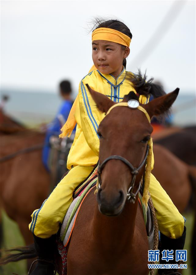 7月19日,赛罕吉雅骑着马参加“四季乌珠穆沁”马文化主题活动。 今年10岁上三年级的赛罕吉雅,已经是内蒙古东乌珠穆沁旗满都宝力格镇小有名气的赛马骑手。进入7月暑假,草原上各地的那达慕和赛马活动接二连三,赛罕吉雅也开始了自己马背上“飞驰”的夏天。 赛罕吉雅的父亲阿木尔吉日嘎拉是当地草原上的驯马手,受父亲影响,赛罕吉雅7岁学会骑马,8岁便开始利用寒暑假和节假日参加草原上各类赛马活动。截至目前,赛罕吉雅已经赢得大大小小30多次赛马比赛的冠军。 现在草原上的孩子大多在旗里和镇里上学,会骑马的孩子越来越少。赛罕吉雅身体轻巧,骑术出众,周边亲戚朋友家的马匹参加比赛都找她当骑手。今年初冬季那达慕的一次比赛中,赛罕吉雅骑着爸爸朋友的马参加比赛,由于在比赛中赛马受到惊吓而失控,将她摔下马背几乎昏了过去。父母担心她,让她放弃第二天的比赛,但倔强的赛罕吉雅还是坚持骑着自家的马参加比赛,并获得名次。 7月20日,在“四季乌珠穆沁”马文化主题活动赛马环节上,赛罕吉雅连续骑着自家的马和叔叔家的马参加两场赛马比赛,分别获得第二名和第五名的好成绩。她说:“只要条件允许,在不影响自己学习的同时,我会坚持骑下去。” 新华社记者 任军川 摄