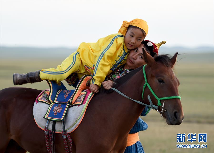 7月18日,父亲阿木尔吉日嘎拉将赛罕吉雅抱上马。 今年10岁上三年级的赛罕吉雅,已经是内蒙古东乌珠穆沁旗满都宝力格镇小有名气的赛马骑手。进入7月暑假,草原上各地的那达慕和赛马活动接二连三,赛罕吉雅也开始了自己马背上“飞驰”的夏天。 赛罕吉雅的父亲阿木尔吉日嘎拉是当地草原上的驯马手,受父亲影响,赛罕吉雅7岁学会骑马,8岁便开始利用寒暑假和节假日参加草原上各类赛马活动。截至目前,赛罕吉雅已经赢得大大小小30多次赛马比赛的冠军。 现在草原上的孩子大多在旗里和镇里上学,会骑马的孩子越来越少。赛罕吉雅身体轻巧,骑术出众,周边亲戚朋友家的马匹参加比赛都找她当骑手。今年初冬季那达慕的一次比赛中,赛罕吉雅骑着爸爸朋友的马参加比赛,由于在比赛中赛马受到惊吓而失控,将她摔下马背几乎昏了过去。父母担心她,让她放弃第二天的比赛,但倔强的赛罕吉雅还是坚持骑着自家的马参加比赛,并获得名次。 7月20日,在“四季乌珠穆沁”马文化主题活动赛马环节上,赛罕吉雅连续骑着自家的马和叔叔家的马参加两场赛马比赛,分别获得第二名和第五名的好成绩。她说:“只要条件允许,在不影响自己学习的同时,我会坚持骑下去。” 新华社记者 任军川 摄