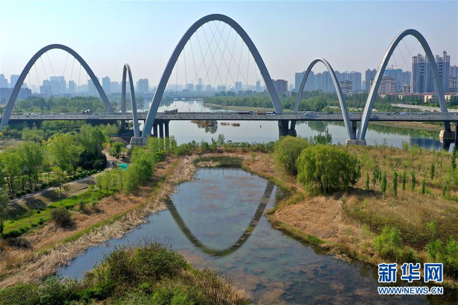 这是5月2日无人机拍摄的太原市汾河两岸景色。 新华社记者 曹阳 摄