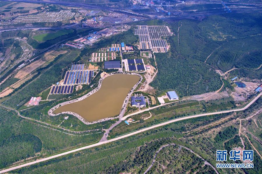这是2018年8月1日无人机拍摄的位于山西省朔州市的安太堡露天煤矿复垦区。 新华社记者 曹阳 摄