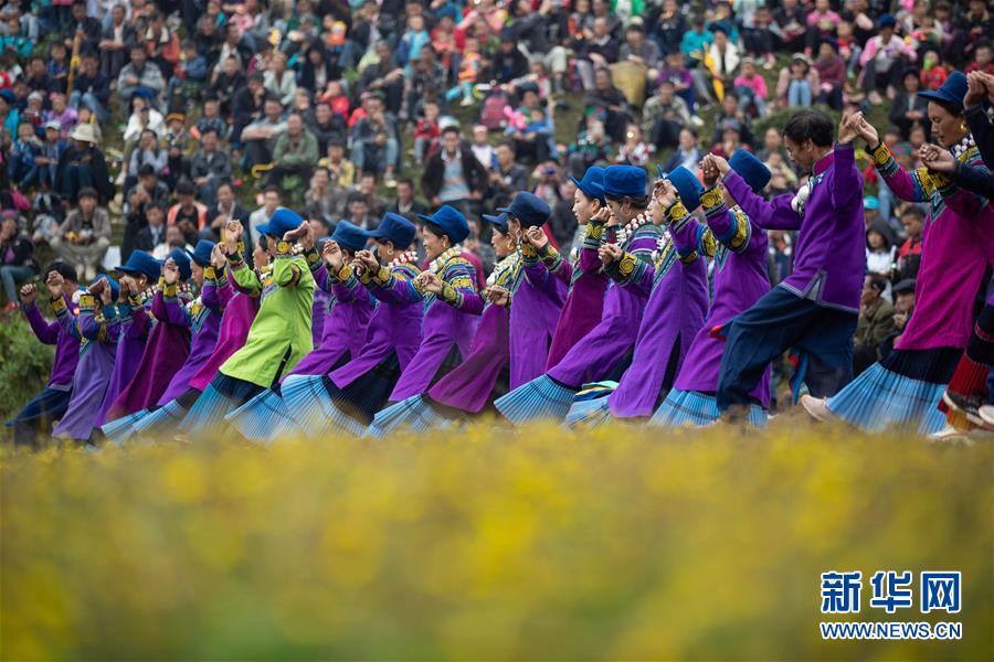 7月22日,在布拖县衣某片区火把广场,当地彝族群众跳起彝族达体舞。新华社记者 江宏景摄