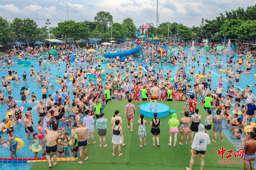 2019年7月17日,广东佛山盈香生态园水上乐园九寨水城,游泳池里人山人海,人声鼎沸,像“下饺子”一样。曾令华/视觉中国