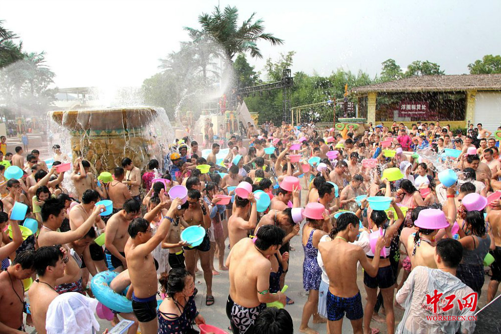 2019年7月14日,上海,在玛雅海滩水公园内,游客在人造海滩游泳戏水,感受异域风情歌舞表演,体验“惊险刺激”游乐园极限挑战。行云/视觉中国