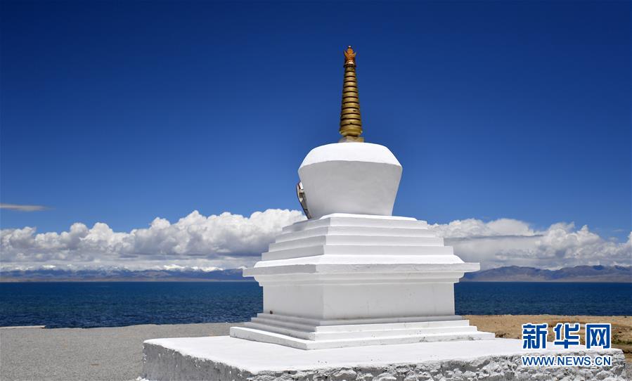 这是7月21日在玛旁雍错湖边拍摄的佛塔。 玛旁雍错湖位于西藏阿里地区的普兰县境内,海拔4588米,面积412平方公里,四周雪山为湖泊常年补水,是著名的旅游胜地。 新华社记者 觉果 摄