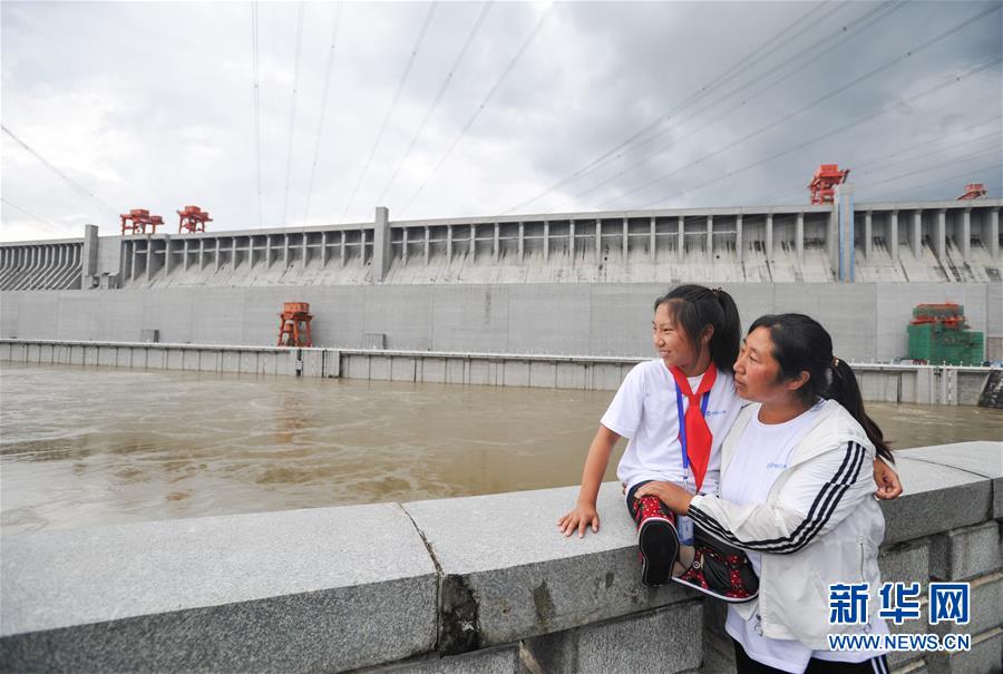 7月23日,来自内蒙古巴林左旗三峡中水电小学、患有先天性残疾的赵欣婷在妈妈的陪伴下参观湖北宜昌三峡坝区。 当日,为期6天的2019“三峡娃娃行”宜昌水电夏令营在湖北宜昌三峡工程所在地启动,来自三峡集团定点扶贫、对口支援、少数民族帮扶的9个帮扶区域的300余名在校中小学生参加活动。 活动以“相聚三峡、放飞梦想”为主题,通过走近三峡工程、体验三峡升船机、学习水电科学知识等形式,让孩子们亲身感受祖国发展取得的伟大成就。 新华社记者 李任滋 摄