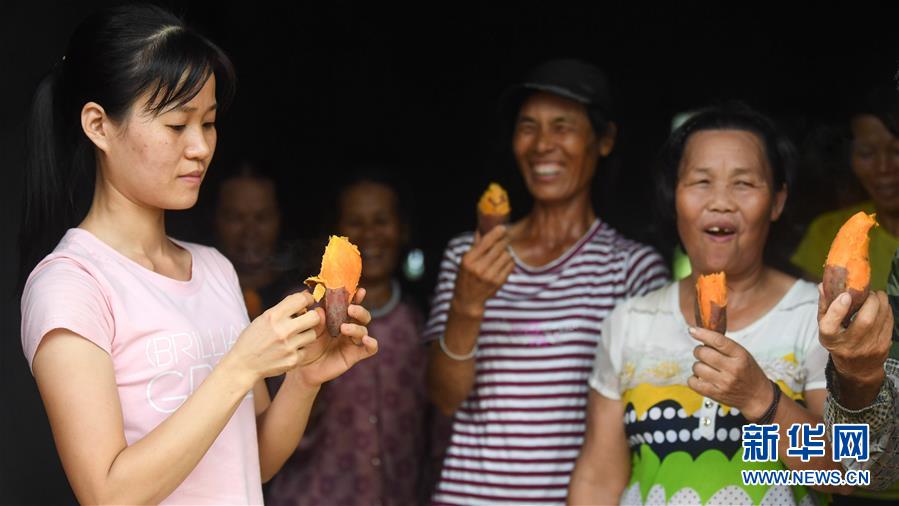 7月23日,钦州市钦南区犀牛脚镇西寮村群众在品尝红薯。 广西钦州市钦南区犀牛脚镇西寮村是一个贫困村。近年来,驻村工作队与村里的贫困群众一起谋划,利用村里盐碱地富含硒等微量元素这一特性,大力发展红薯种植。目前,西寮村种植的100多亩红薯正值收获季节,预计可收入15万多元,助力贫困户脱贫。 新华社记者 张爱林 摄