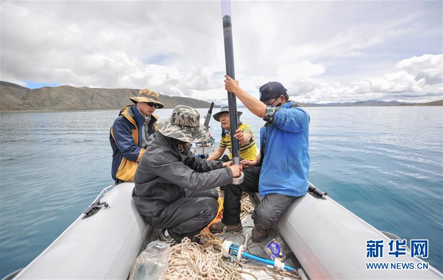 科考队员取出沉积物岩芯(7月22日摄)。 目前,第二次青藏高原综合科考正在对羊卓雍错进行深度测量,并测算水量。这是中国科学家首次对羊卓雍错进行全面的水深等深线测量。此次测量也是第二次青藏高原综合科考对“亚洲水塔”水量测算的一部分。 羊卓雍错简称羊湖,位于西藏山南市浪卡子县境内,距拉萨不到100公里,其自然景色优美,是西藏的热门旅游景点之一。 新华社记者 晋美多吉 摄