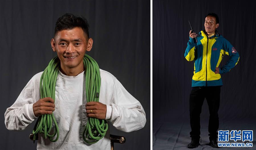 拼版照片为西藏拉萨喜马拉雅登山向导学校的向导阿旺扎西(左),右图为罗穷(2019年7月10日摄)。 新华社发(孙非摄)