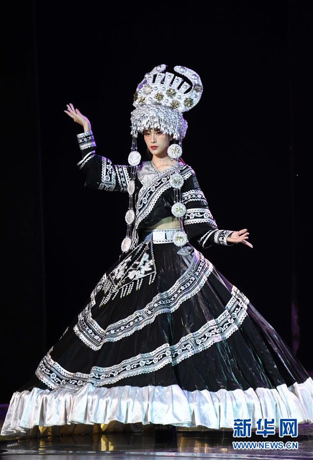 7月24日,模特在展示特色民族服饰。 7月24日,丝路云裳·七彩云南2019民族赛装文化节各阶段成果展示暨东南亚5国艺术精品展演《丝路放歌》在云南楚雄彝州大剧院举行,共有来自云南省16个州市的少数民族服饰及柬埔寨、老挝、缅甸、泰国、越南艺术精品参加展演。 新华社记者 杨宗友 摄