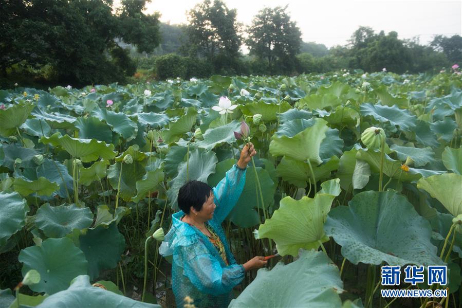 7月25日清晨,双泉村村民在荷塘采摘荷花。 浙江建德大慈岩镇双泉村是远近闻名的荷花村,全村荷花种植面积400余亩,形成以莲子、藕粉、荷叶茶为支柱的荷产业。自2003年开始,村里开始发展荷花经济,向日本客商外销荷花,每年出口荷花3万—5万枝,每户农户平均年增收5000元。 新华社记者 翁忻旸 摄