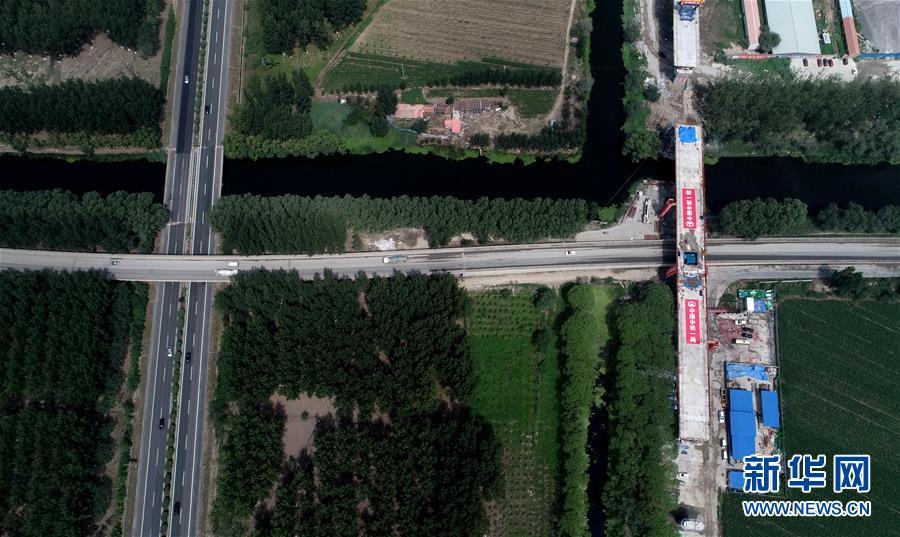 7月25日,京滨高铁宝坻特大桥首座连续梁顺利合龙(无人机拍摄)。 当日,京津“第二条城际快速通道”——京滨高铁工程迎来重要节点,由中铁一局集团承建的京滨高铁宝坻特大桥首座连续梁顺利合龙,这是京滨高铁全线第一座合龙的连续梁。 新华社记者岳月伟摄