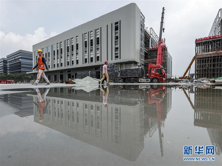 工人从正在建设中的上海虹桥进口商品展示交易中心B型保税仓库前经过(7月25日摄)。 新华社记者 沈伯韩 摄