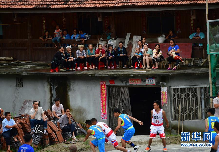乌英苗寨的村民在观看篮球比赛(7月19日摄)。 新华社记者 黄孝邦 摄