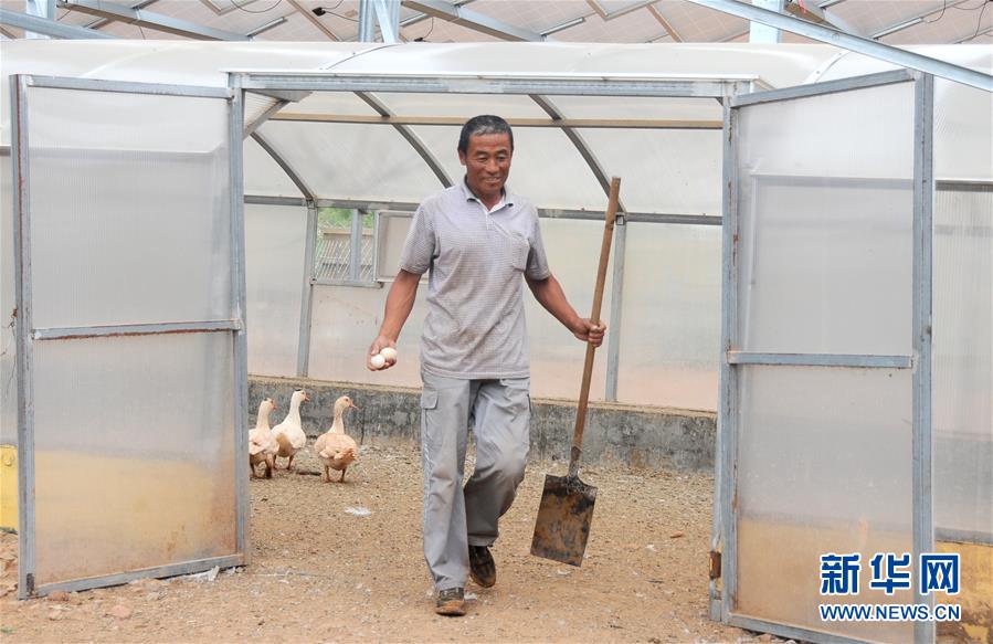 7月28日,参与库布其生态光伏项目的杭锦旗独贵塔拉镇杭锦淖尔村村民杨凤祥在光伏板下劳动。生态光伏项目板上发电、板下种植、板间养殖,让他走上了脱贫致富之路。 新华社发(李志鹏摄)