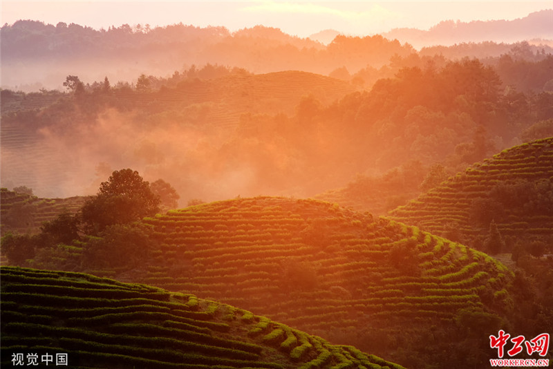 2019年7月29日,江西吉安,遂川与万安交界处的千亩黄金茶园,云雾萦绕,风景如画。遂川县的珊田村与万安的关石村,山水相连,这里的上千亩黄金茶园,成为一道亮丽的风景,美不胜收。图片作者:肖远泮 /视觉中国