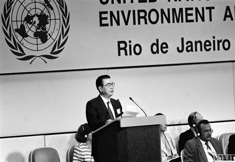 1992年6月12日,李鹏同志在联合国环境与发展大会首脑会议上发言。 新华社记者 李生南 摄