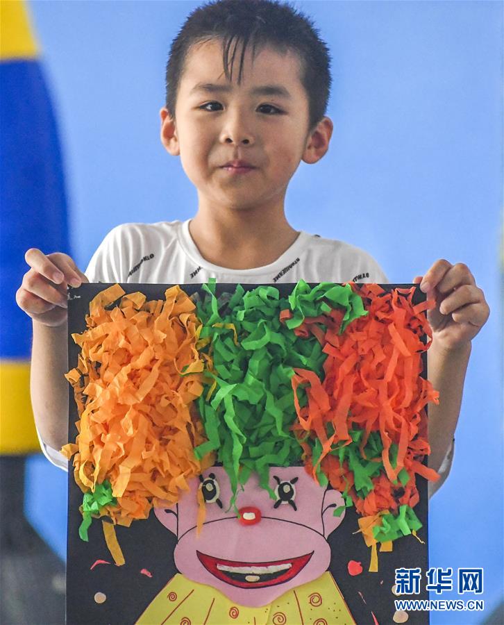 7月30日,孩子们在景县龙华青少年培训中心展示自己完成的手工作品。 新华社记者 李晓果 摄