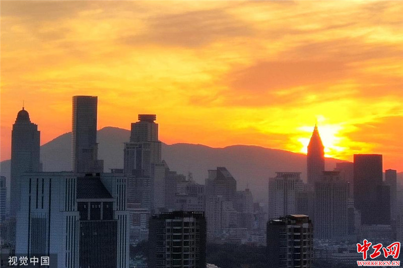 南京持续高温“烧”出漫天红霞