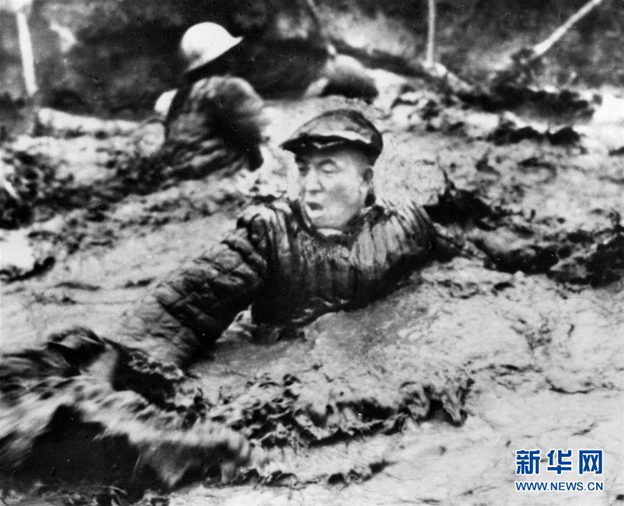 在大庆会战初期,“铁人”王进喜为了保住钻机,不顾左腿重伤跳进泥浆池,用身体搅拌泥浆,奋战3个多小时制服井喷(资料照片)。新华社发
