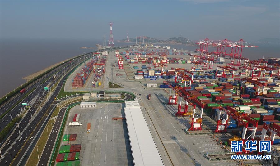 这是2018年7月25日无人机拍摄的上海洋山深水港四期自动化码头。 新华社记者 丁汀 摄