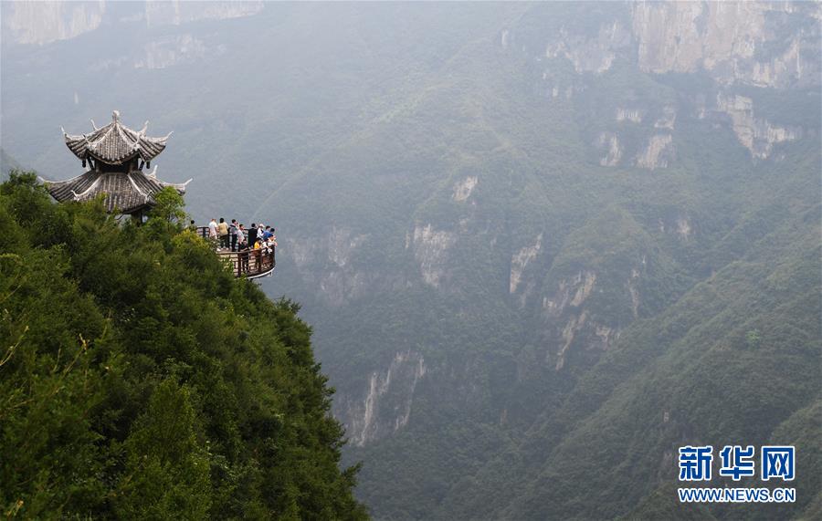 7月30日,游客在云阳龙缸国家地质公园游览。 云阳龙缸国家地质公园位于重庆市云阳县东南隅,深处三峡库区腹心,景区内地貌奇特、雄险俊秀、风景壮美。 新华社记者王全超摄