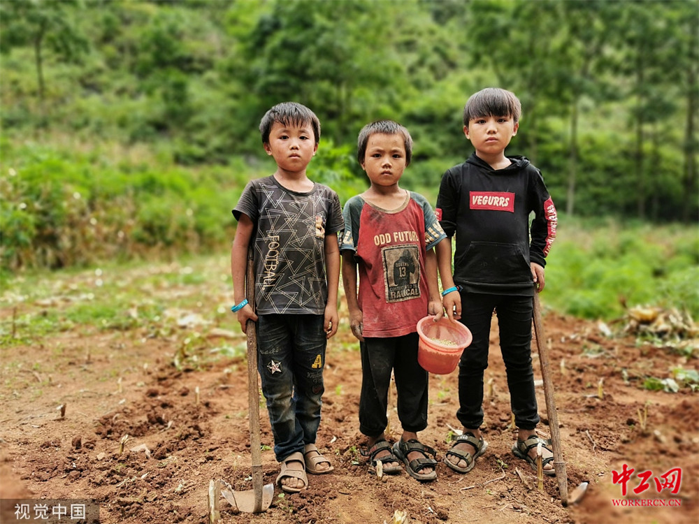2019年7月28日,广西河池,蓝鸣陈兄弟三人。
