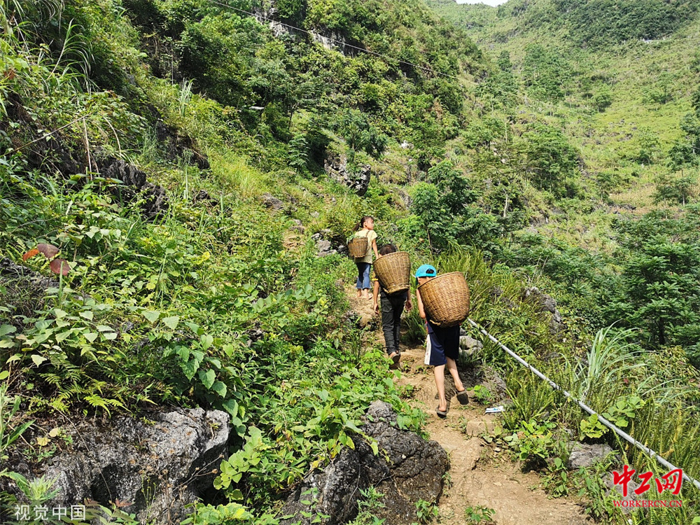 广西特困学生的农忙季:孩子背着几十斤玉米爬山路
