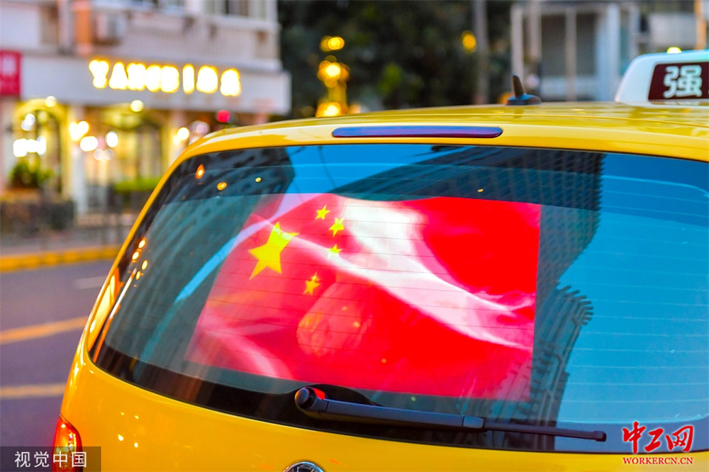 上海:万辆出租车“飘”红旗 刷屏社交圈