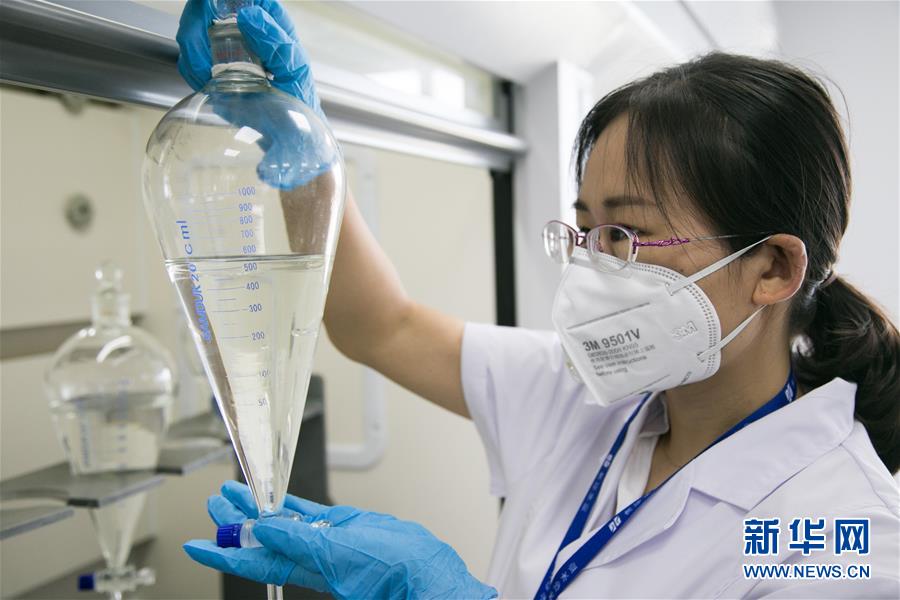 8月1日下午,在国家城市供水水质监测网长沙监测站,水质检测工作人员岳琳在对水样进行前处理。新华社发(陈思汗摄)