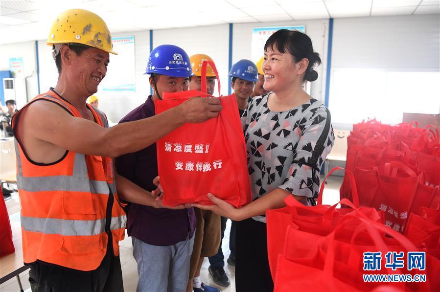 8月3日,在香河机器人小镇内一家来自北京的包装企业,工人在车间的生产线上工作。