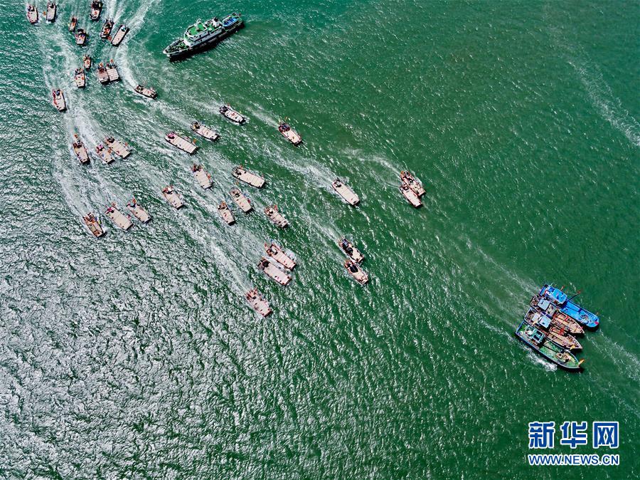 8月3日,在首届福清开渔节上,渔船驶向大海(无人机拍摄)。新华社记者 姜克红 摄