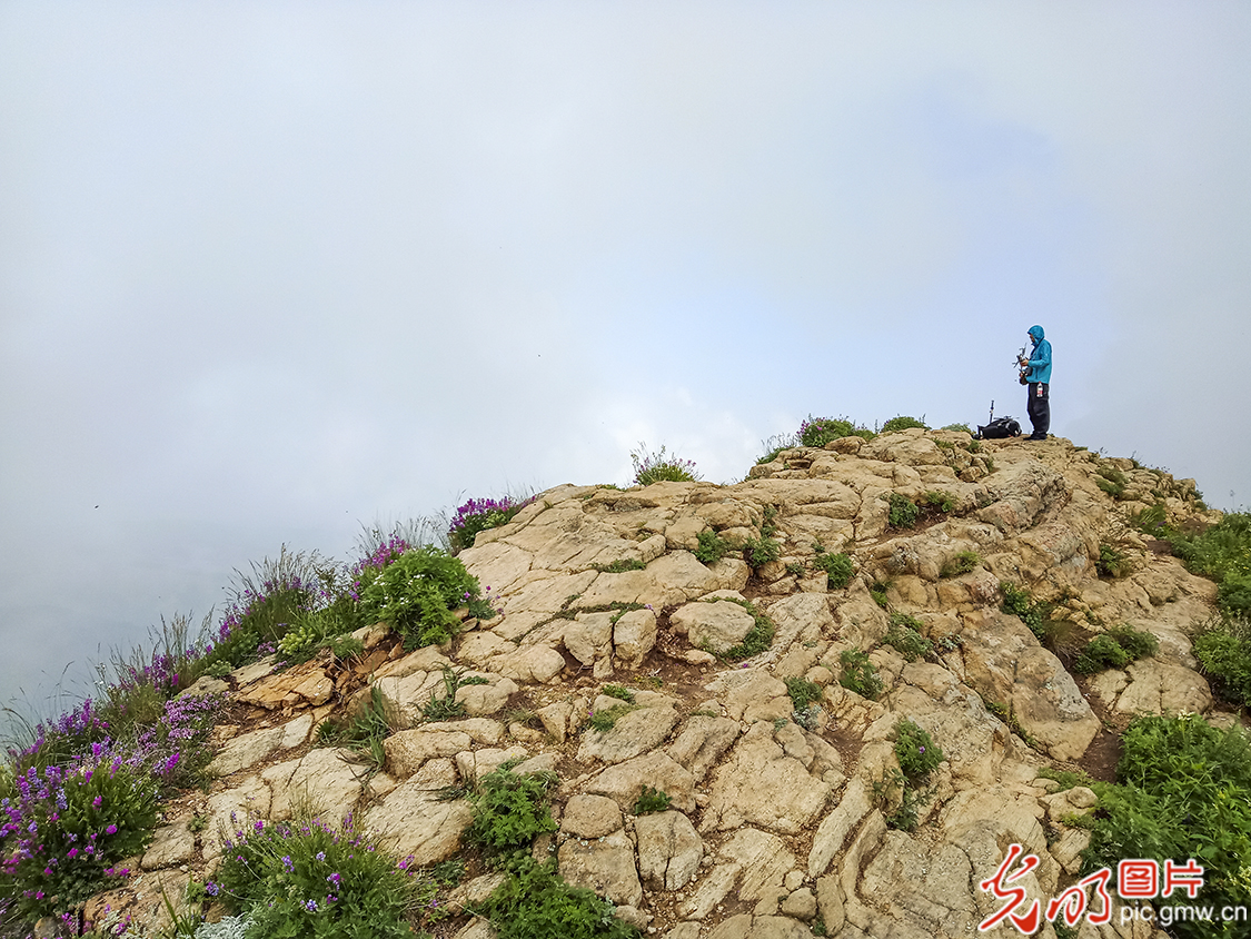 苏木山林场坐落在内蒙古兴和县大南山深处,以其险峻的山势,茂密的森林,纷呈的花卉吸引人们前来观光旅游。季夏时节,由苏木山山脚顺着栈道一路登高,满山的落叶松林遮天蔽日。登上苏木山最高点黄石崖,观远山,不同层次的绿色前呼后拥般扑向眼帘,仿佛诉说着一个个务林人造林护林的动人故事。60年风雨,两代人的不懈努力,荒山秃岭上人工种植出18.6万亩人工林如今已郁郁葱葱。图为2019年7月18日,苏木山林场内海拔2334.7米的黄石崖。包东坡 摄/光明图片