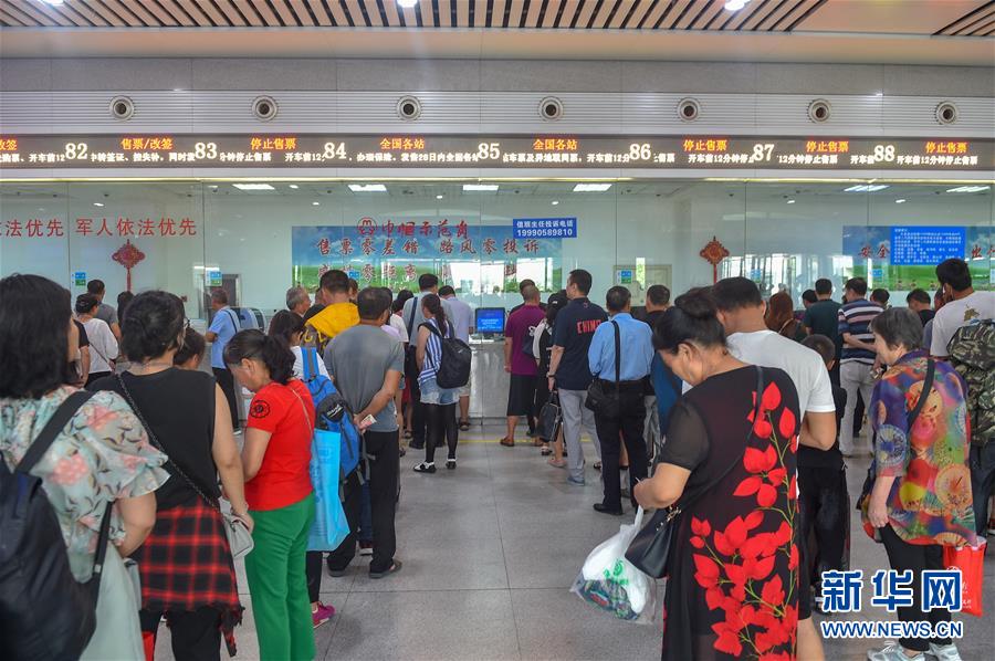 8月4日,旅客在长春站售票大厅排队购票。新华社记者 张楠 摄