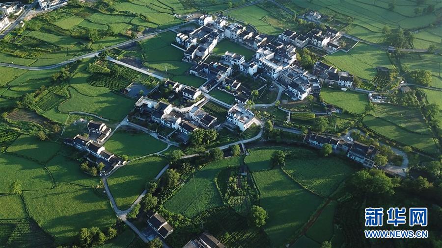 这是8月4日无人机拍摄的安徽黟县宏村风景区附近的村庄。 盛夏时节,晨光中的安徽黟县宏村风景区呈现出一片迷人的景象,美不胜收。 新华社记者 张端 摄