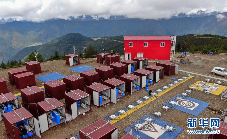 俯瞰海拔4120米的雅江县帕姆岭寺顺丰无人机雅江运营基地(8月5日无人机拍摄)。新华社记者 江宏景 摄